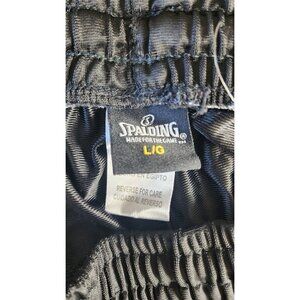 Spaulding L/G shorts, 100% polyester black shorts, drawstring athletic shorts, elastic waistband shorts, lightweight gym shorts, moisture-wicking shorts, running basketball shorts, casual active shorts, size L/G shorts, waist 32-36 in shorts, inseam 7-8 in shorts, tolerance 1 in shorts, gift for athletes shorts, machine wash athletic shorts,