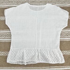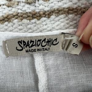 Spazio Chic 100% Linen Top Womens Small White Cotton Eyelet Peplum Blouse Italy