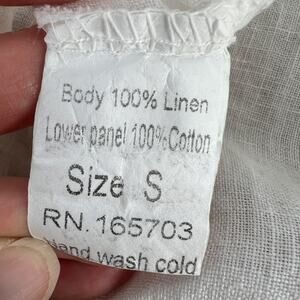 100% linen top with 100% cotton lower panel with eyelet detailing