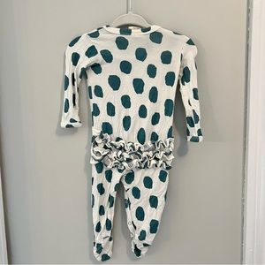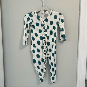 Ruffle footie features ruffles down the front and on the back side of romper!