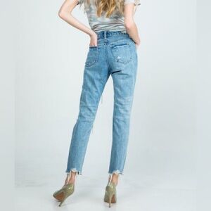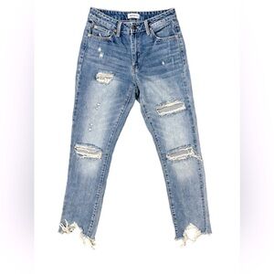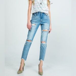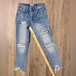 Special A Los Angeles Distressed High Rise Mom Jeans Cotton Ankle Fray Blue