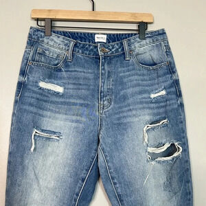 Upgrade your denim collection with these Special A Light Wash Distressed Boyfriend Jeans. Featuring intentional frays and holes, these jeans offer a trendy, lived-in look that's perfect for casual outings. Made from 100% cotton, these jeans are both comfortable and stylish, in Excellent Used Condition (EUC).