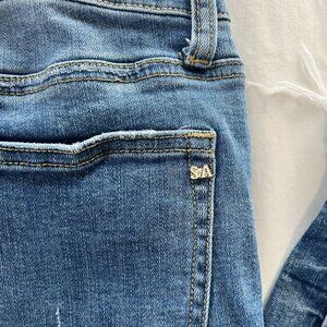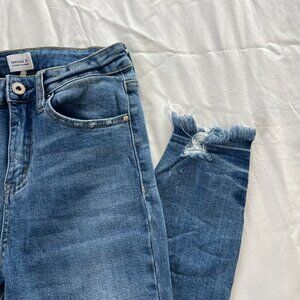 Special A Medium Wash High Waist Fringe Hem Skinny Leg Jeans | Size 3/25