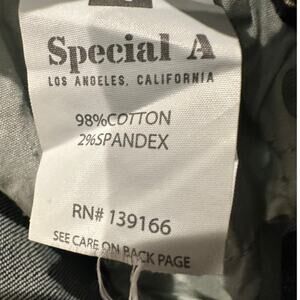 • Measurements: Waist 25 in, Rise 10.5 in, Inseam 29 in, Leg Opening 10 in