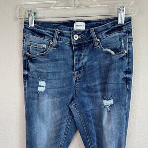 Special A Skinny Jeans Junior's 3 Mid Rise Distressed Stretch Denim Medium Wash