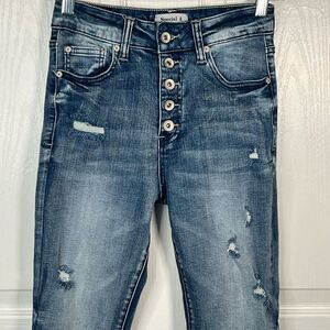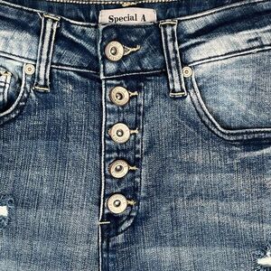 Special A Sz 1 High Rise Skinny Jeans Exposed Button Fly Distressed