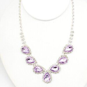 Special Occasion Teardrop Rhinestone Necklace Silver Tone Lavender & Clear NOS