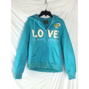 Special One International Juniors Hoodie With Joggers 2 Piece Sz Med Preowned Flaw Dark Sea Foam. Flaw is two missing crystals one on jacket and the other one on the jacket, also there is a LOT of pilling throughout the set see photos. Jacket with full zip lined with faux fur very warm. Joggers fleece lined with drawstring and elastic waist. Measurements are an approximate and taken while laying flat. Condition is Preowned with Flaw. Shipped with USPS Mail.