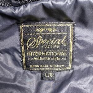 Special One women’s puffer vest with hood. Size L. Removable hood. Black/gray.