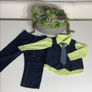 Infant GQ Navy lime Baby Suit & Tie 4 piece 18 months formal