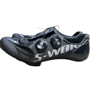 Sleek black cycling shoes. Dual dials for precision fit. S-Works branding on top. 6.5. Barely used