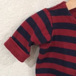 Light wash wear. Good Condition. Striped navy blue and maroon pattern. Athletic sporty look. Cuffed sleeves. Snap button closure. Fall winter. Casual. Outdoor.