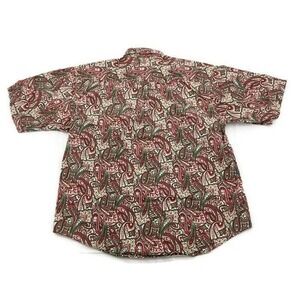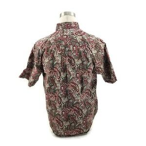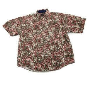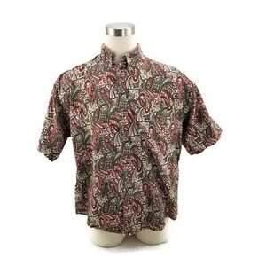 Specialty Collection Red Green Paisley S/S Button Up Cotton Shirt Mens Size L