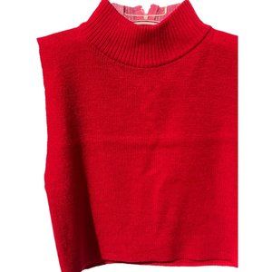 A specialty house Mock red turtleneck sweater, perfect for added warmth and style under your winter outfits. Made from 100% acrylic, this stretchy layering piece is sleeveless and features a zip back. Manufactured in Korea.