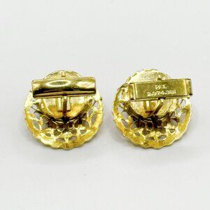 The Speckled Art Glass Gold Tone Filigree Cufflinks are a stylish and unique accessory for men. Featuring intricate gold tone filigree designs with speckled art glass accents, these cufflinks add a touch of elegance to any formal outfit. Designed with a sophisticated theme in mind, these cufflinks are sure to elevate your look with their eye-catching details and quality craftsmanship. Perfect for adding a touch of artistry to your attire, these cufflinks are a must-have for the modern gentleman. Measures 7/8 inches.