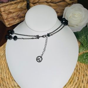 Spectacular Vintage Crown Trifari Gun Metal Faceted Black & Clear Beaded Crystal Necklace, vintage. Shorter strand is 16”, longer strand is 18” plus 2” extension chain*. Circa 1980s . Excellent condition.