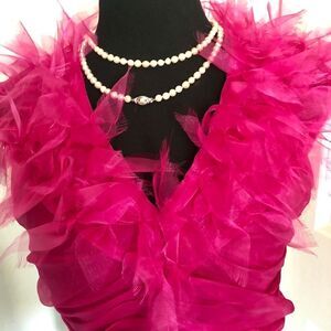 Great party top by Spenser Jeremy in size medium. The shell is 100% silk. Has a zipper in the back. The color is hot pink like the second picture. In excellent condition.