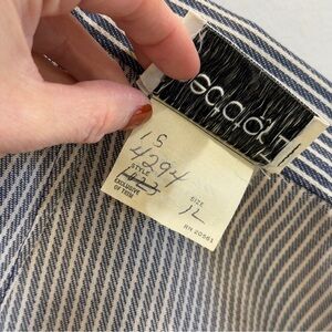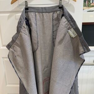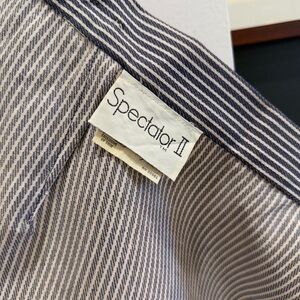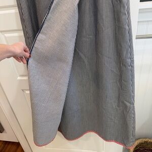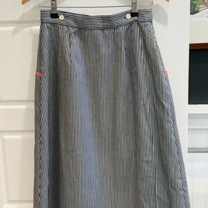 - Striped denim material, navy blue and white