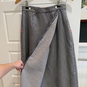Spectator II 1970s Striped Denim Wrap Maxi Skirt with Floral Appliqués