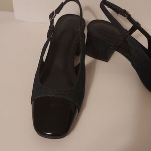 Step out in style with these stunning denim and black patent slingback spectator pumps. Designed for both elegance and comfort, these shoes are perfect for elevating any outfit, whether it's for a chic day at the office or a night out on the town.
