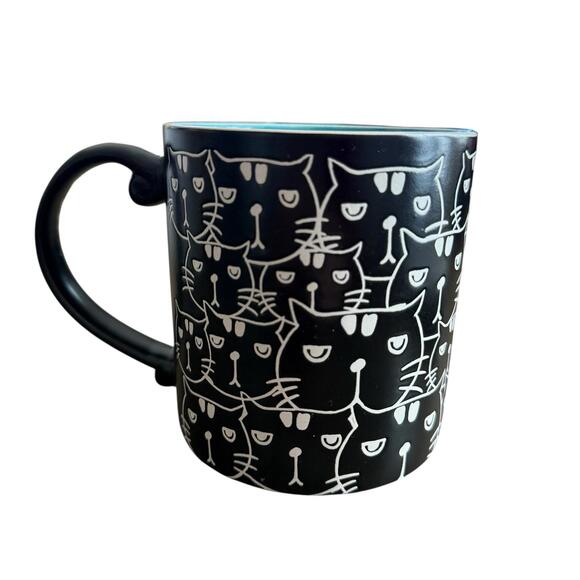 Spectrum Black Coffee Mug Embossed Cats Ceramic 16 Oz