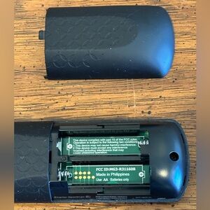 Spectrum Cable Universal Remote Control (model SR-002-R). Stray scratches on the remote especially around the wording at the bottom. Remote works as a red light is seen under “input” with batteries in place. See pics. Batteries are not included.