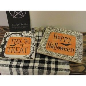 These unique ceramic plates have a sooky yet elegant vibe. This is a perfect combination for the popular home decor styles today. They have a vintage appeal with keeping a classic depiction of creepy Halloween graphics and quotes.