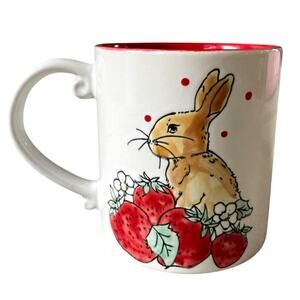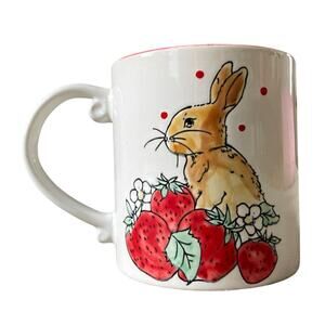 Spectrum Designz Bunny Rabbit Coffee Mug Spring Easter Strawberry Stoneware NEW