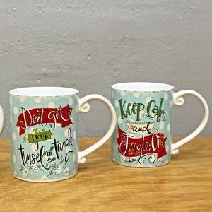 Spectrum Designz Christmas Holiday Ceramic Coffee Cocoa Mugs w/ Phrases Set of 4