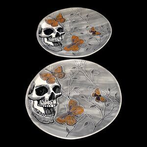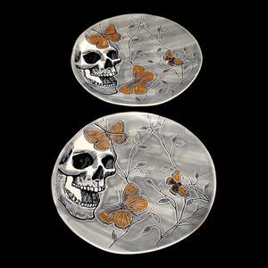Spectrum Designz Gothic Handmade Skull & Butterflies 11" Ceramic Plates (2)