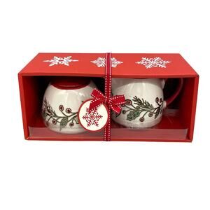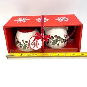Spectrum Designz Hand Crafted 2016 Gift Set Cream & Sugar Christmas Holly 2016