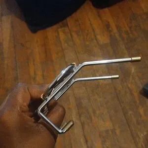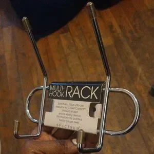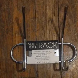 Chrome multi-hook rack with sleek design. Perfect for organizing spaces.