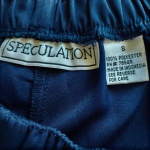 Description: Beautiful pair of Speculation navy pull on elastic waist with navy button on waist at front center for looks, front side pockets crop pants.