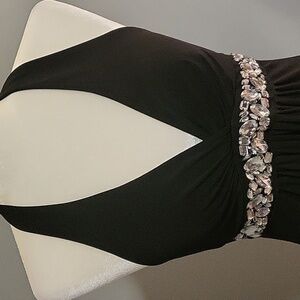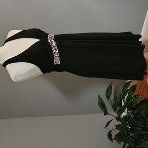 Beautiful black Speechless halter dress with lightly padded cups ties at waist and has embellishment at bodice in Size M.