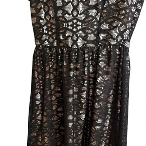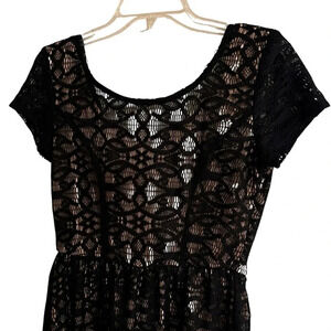 Speechless Black Lace Mini Dress Nude Lining Short Sleeve Round Neck