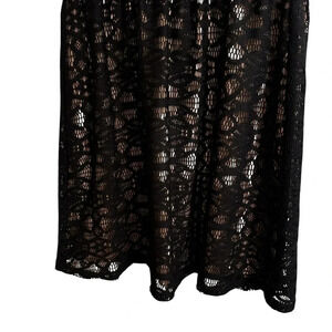 Speechless Black Lace Mini Dress Over Nude Short Sleeve Round Neck 7