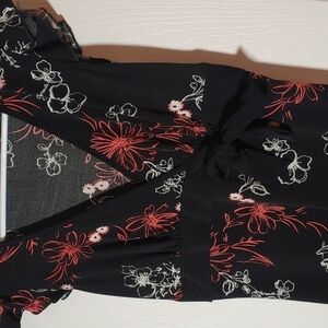 Speechless Black Pink Floral Print Faux Wrap V Neck Dress Size S