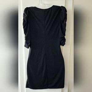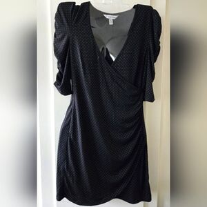 Speechless Black Ruched Sleeved Wrap Mini Dress Pokadot NWOT