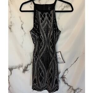 Speechless Black Sleeveless Metallic Halter Sheath Dress Size 7 NWT