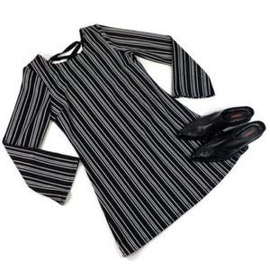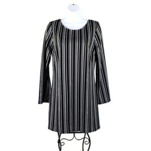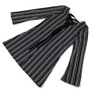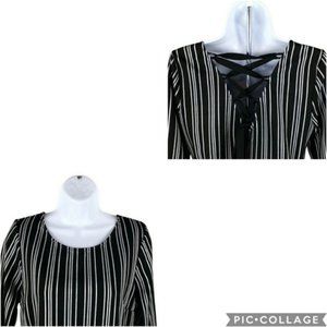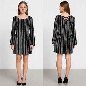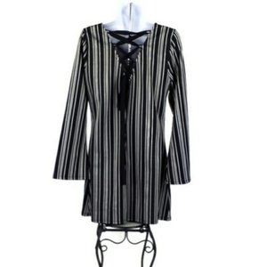 Speechless Black White Stripe Long Bell Sleeve Lace Up Back Mini Dress Womens M