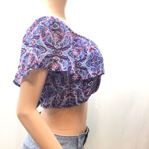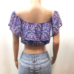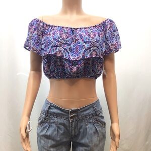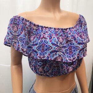 Speechless Juniors Blue Ruffle Off The Shoulder Crop Top Size XL. Condition is "New with tags". Listing is for top only. From smoke free home.