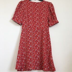 Speechless Boho Orange Floral V-neck short Puff Sleeve A-line Mini Dress