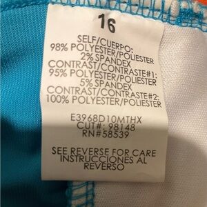 This listing is for a midi girls dress size 16. It has an attached bolera, which is turquoise in color with short puffed sleeves. It has a ruffle trim all around and a back tie.