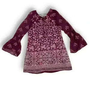 Speechless Dress Womens Medium Burgundy Red Floral Chiffon Lined Bell Sleeve