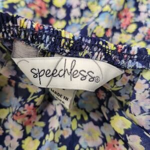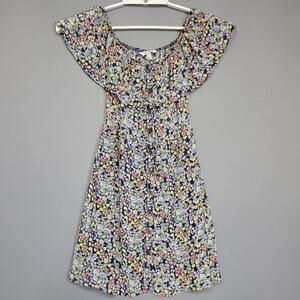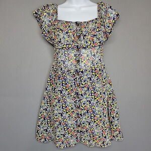 Speechless Dress Women's Medium Navy Blue Floral Off Shoulder Button Up Summer