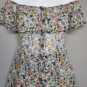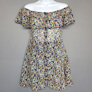 Speechless Dress Womens Medium Navy Blue Floral Off Shoulder Button Up Summer