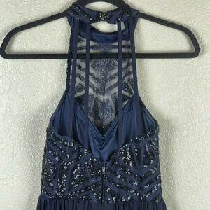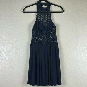 Speechless Dress Women's Sz 5 Fit & Flare Halter Backless Sequin Lined Blue