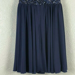 Speechless Dress Women's Sz 5 Fit & Flare Sheer Mesh Sweetheart Halter Crew Neck Sleeveless Backless Sequin Lined Blue