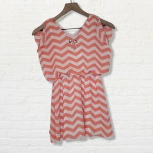 Speechless Dress Peach and White Chevron Girls Size Small Split Sleeve