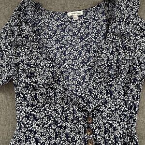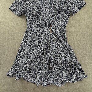 Speechless Fit & Flare Dress Short Sleeve Low V-Neck Ruffled Zipper Floral Small